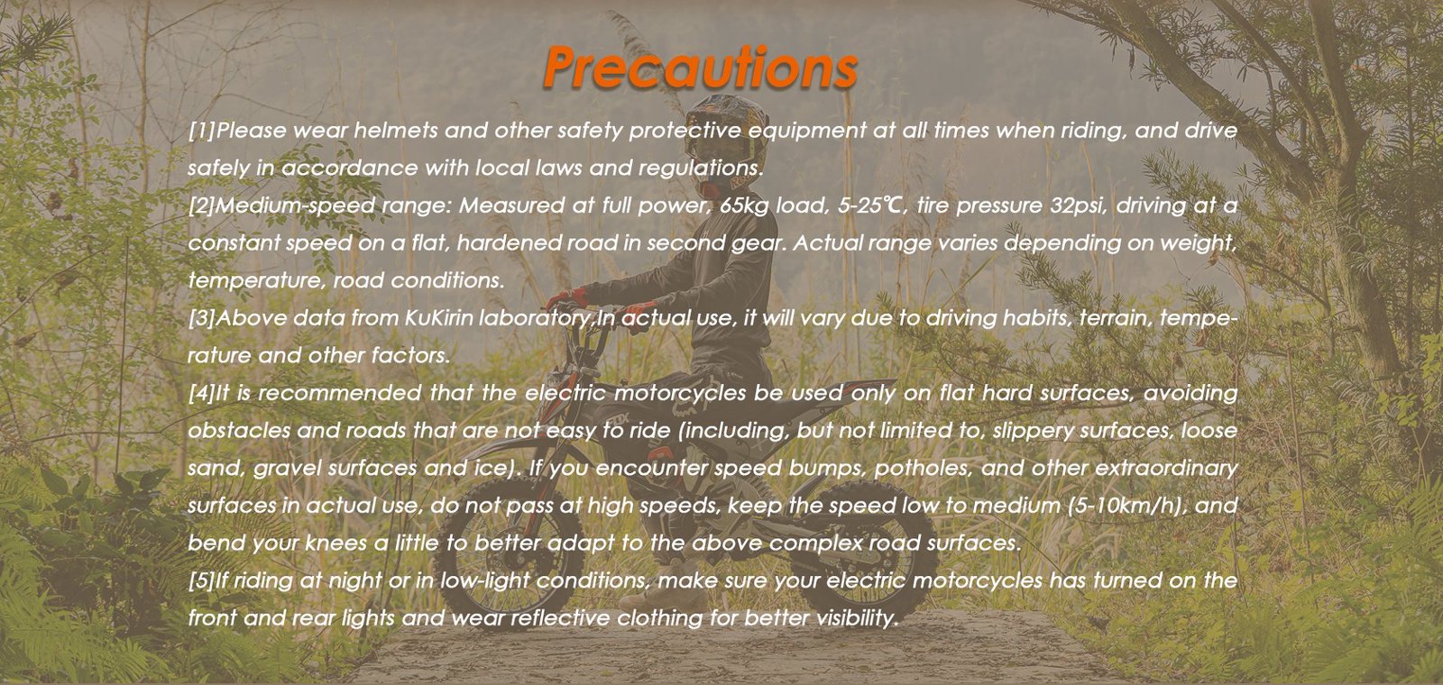 This product KuKirin X1 for sale is intended for off-road use only. It does not include road-legal features such as turn signals or horns. Do not use it on public streets.